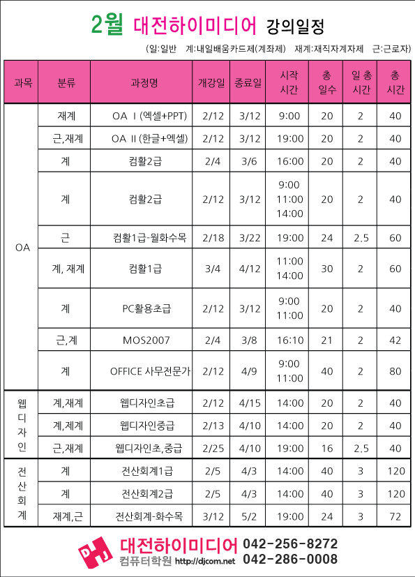 [정규개강]2013년 2월 개강일정입니다.(대전캠퍼스)