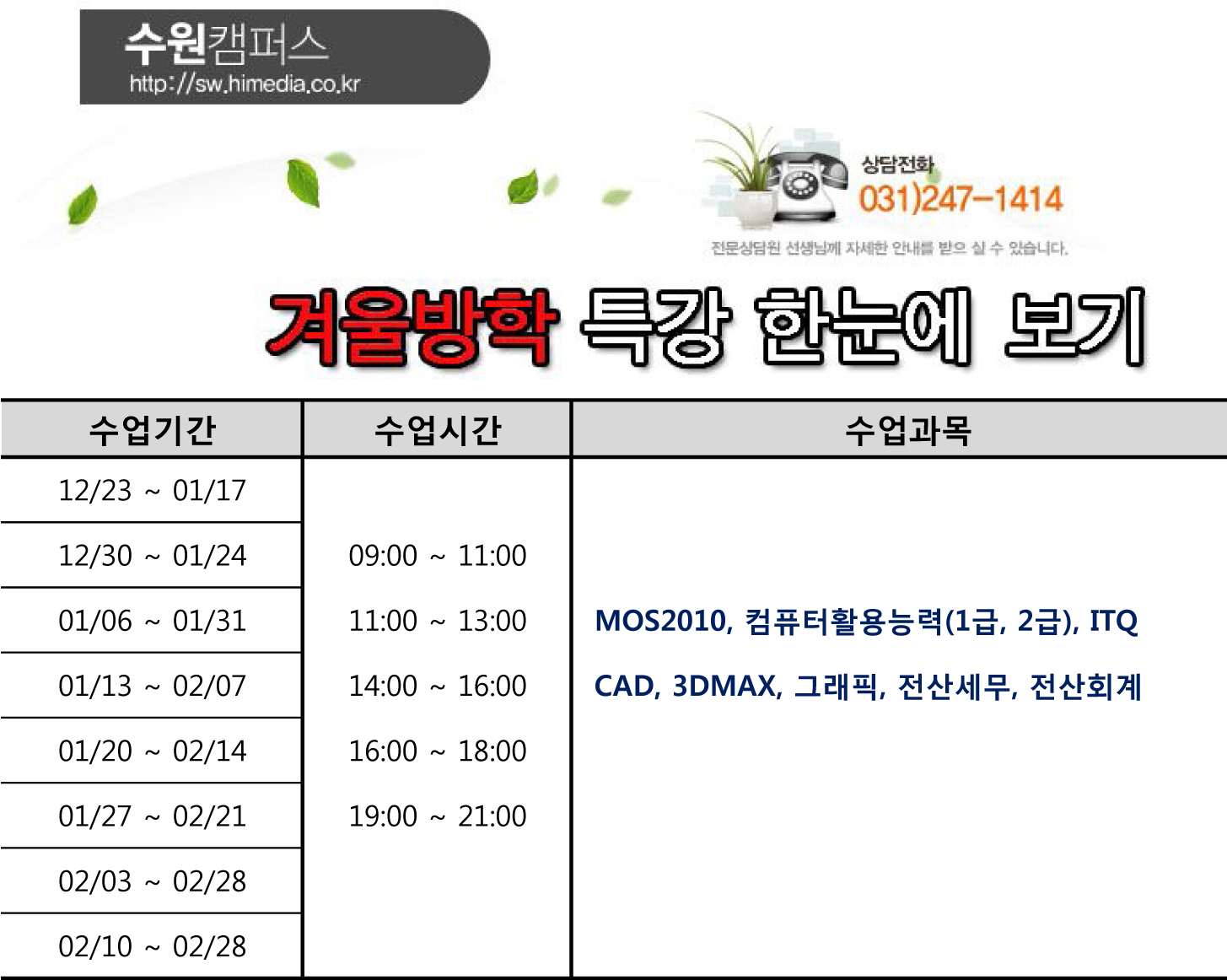 [겨울방학특강]한눈에 보기