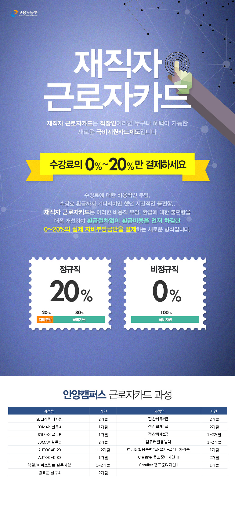 수강료 걱정없는 <재직자 근로자카드> 과정안내